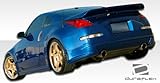 | ✚✚✚ Duraflex FRP Nissan 350Z AM-S Rear Lip Spoiler 1pc > 2003-2008 Extreme Dimensions has revolutionized fiberglass marketing with their premium Duraflex aerodynamics. Duraflex is not flexible like urethane or plastic bumpers. Duraflex fiberglass combines fiberglass, plastic, and flex resins to obtain its unique features. Because of these features, Duraflex technology obtains a durability rate than the average fiberglass product, resulting in reduced shipping damages. Duraflex products come complete with a black primer finish, high quality mesh grille if applicable, generic hardware kit, and a basic guide to help you install the product. This revolutionary product allows the consumer to receive a premium fiberglass product at an affordable price. All fiberglass parts require modification, shaving, sanding, drilling, filling in order to ensure proper fitment.FeaturesHigh quality 6 oz. fiberglassProfessional prep work requiredCutting, Shaving, Filling required on FRP partsBlack primer finishHigh quality mesh grilleInstallation GuideGeneric Hardware Kit (most parts)Reduced damage rate up to 75%DISCLAIMER: Due to differences in products and design, durability test results may vary.