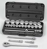CRAFTSMAN INDUSTRIAL 9-24842 Socket Set,Std,3/4 Dr,SAE,28 PcSocket Set, Standard Length, Drive Size 3/4 In, SAE, Number of Pieces 28, Socket Type 12 Pt Std, Sockets Included 12 Pt. Std. 3/4, 13/16, 7/8, 15/16, 1, 1-1/16, 1-1/8,1-3/16, 1-1/4, 1-5/16, 1-3/8, 1-7/16, 1-1/2, 2-3/16, 1-5/8, 1-11/16, 1-3/4, 1-13/16, 1-7/8, 2, 2-1/8, 2-1/4, 2-3/8 In, Accessories Quick Release Ratchet, Sliding Tee Handle, 5 and 8 In Extensions, Blow Molded Case